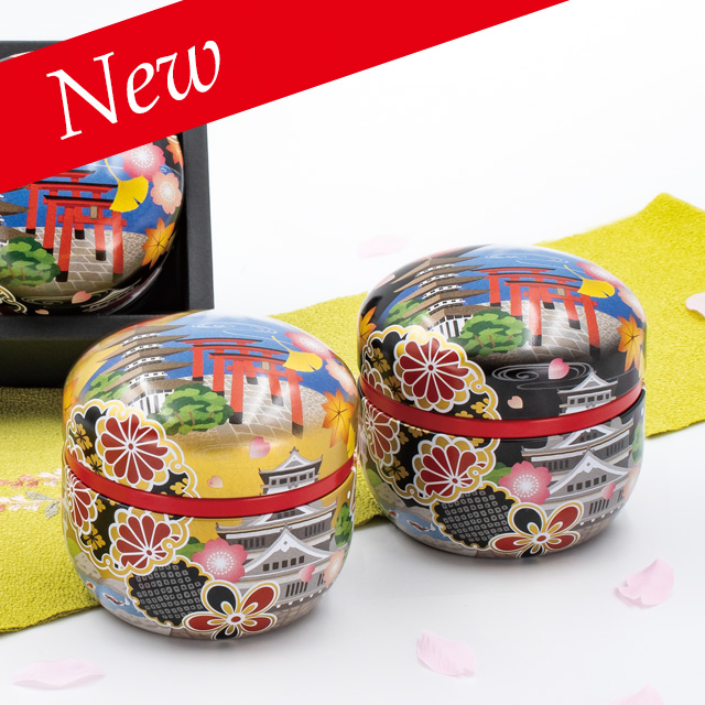 黒面、エンジ面のリバーシブル仕様の華やかな缶です。