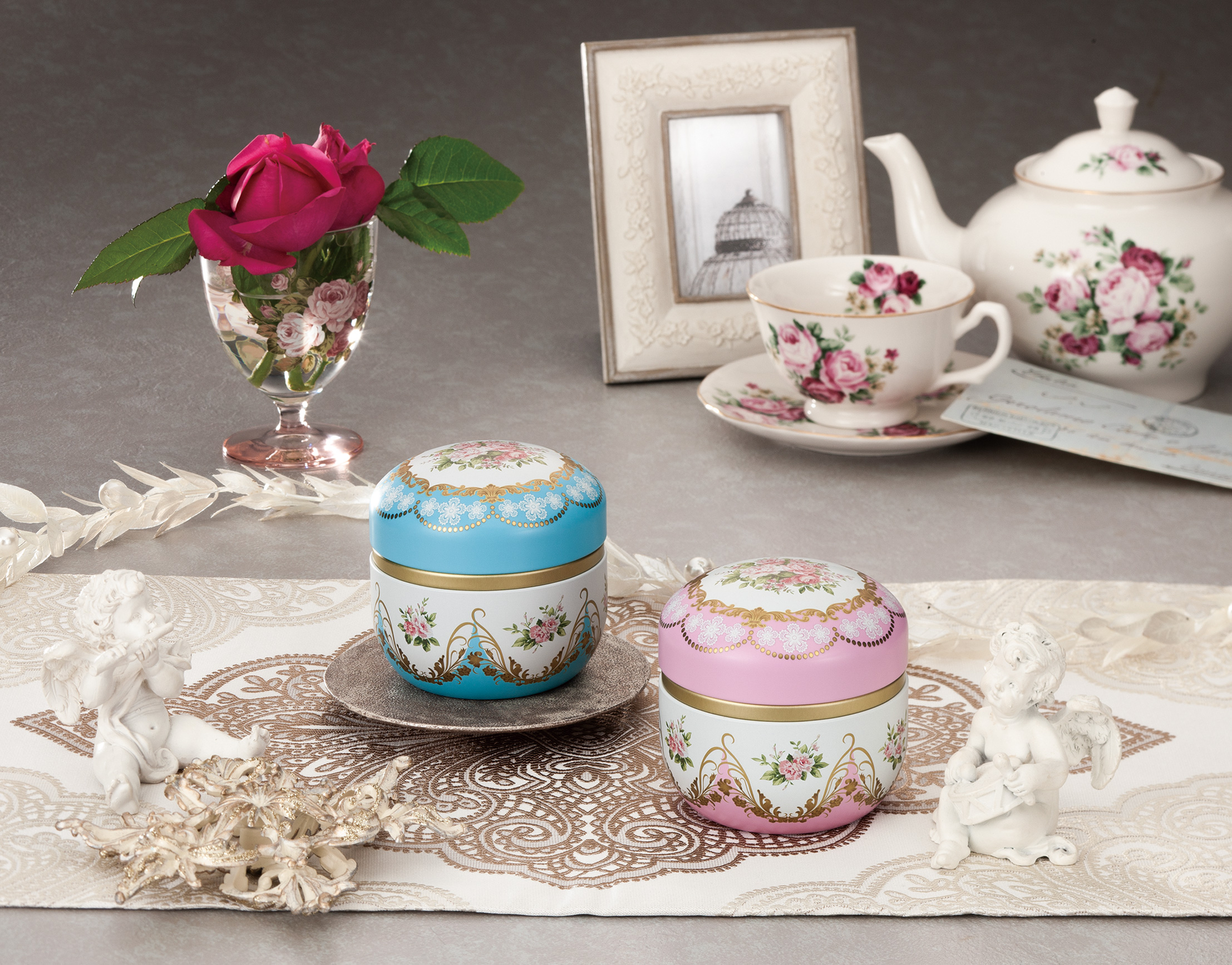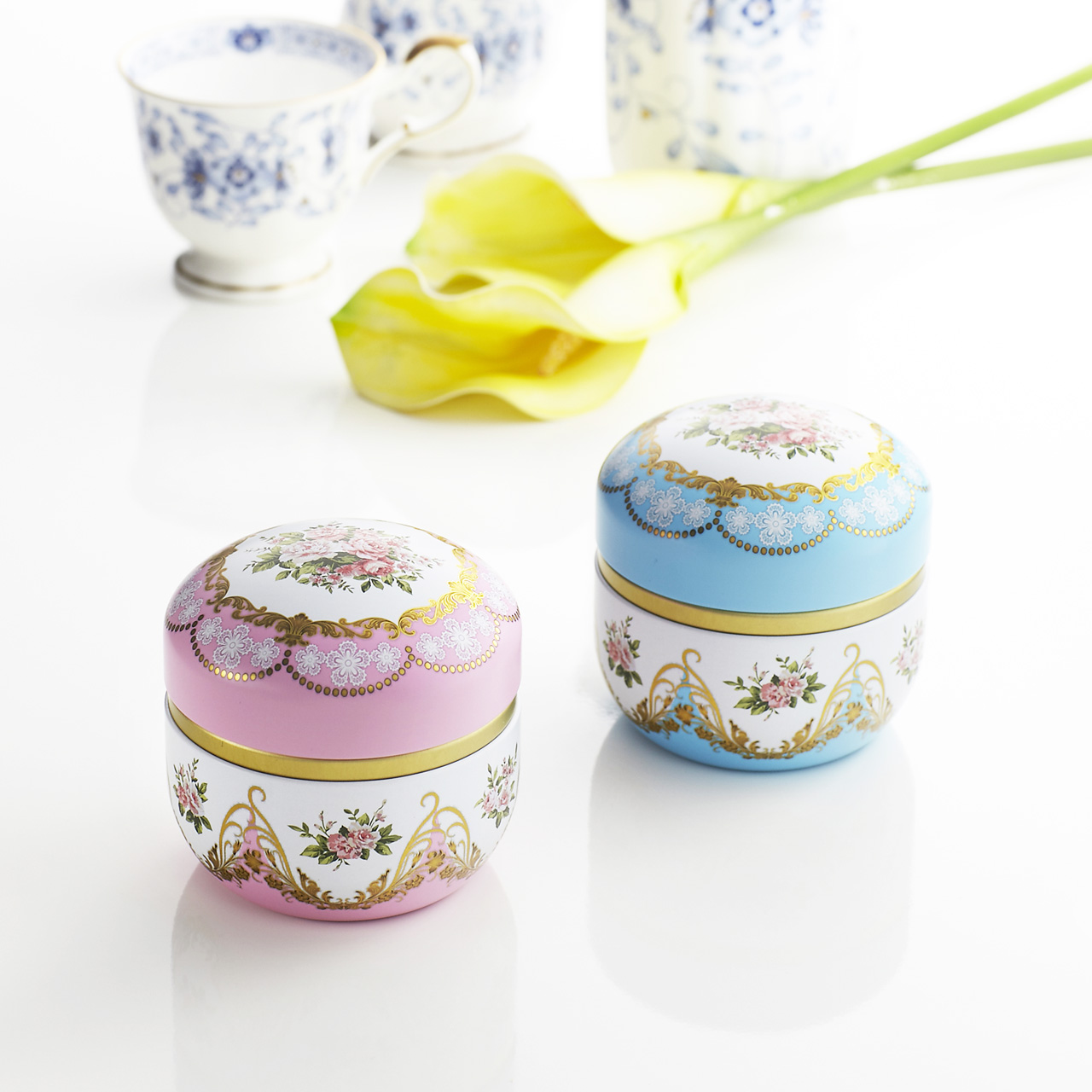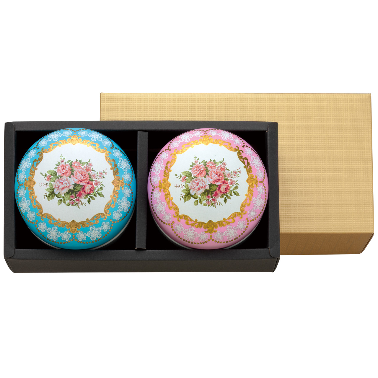 ブルー ピンク セット例(鈴子×2) 鈴子 フルールsuzuko-fleur フルール(fleur)とはフランス語で花を意味します。薔薇の花をモチーフにフランス宮廷のような華やかで品のあるデザインにしました。 お茶やフレーバーティー、お菓子、小物入れなど幅広くご使用いただけます。 [缶の種類・形状] 印刷缶 / 丸型 [デザイン] 洋風 / 鈴子